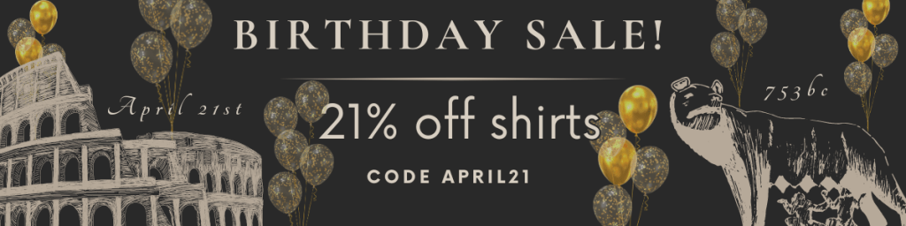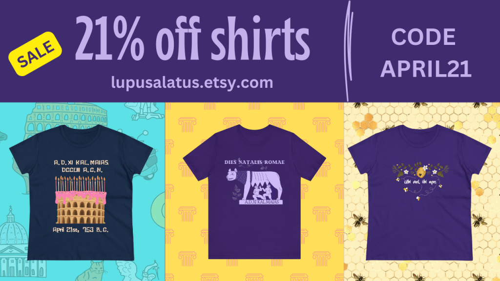 April 21st, the traditional date for the founding of Rome, is quickly approaching, and we are having a Latin shirt sale to celebrate! We’ve just added some new designs to our Etsy store: